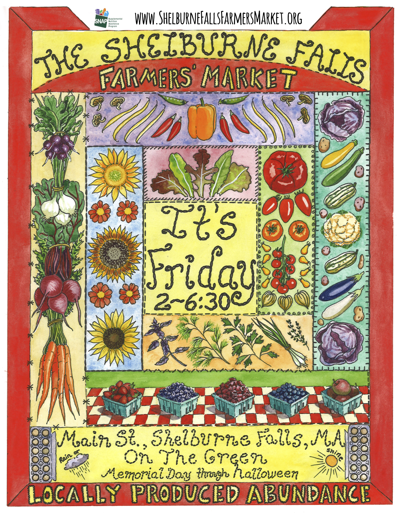 We’re opening as usual on Memorial Day weekend. Again this year we’ll be back on Friday afternoons from 2:00 to 6:30, at our usual spot in Shelburne Falls: the Green at the intersection of Main & Water Streets. Our season will still be running from Memorial Day weekend through the last weekend in October, with this year’s dates being May 23rd through October 31st (Halloween!).